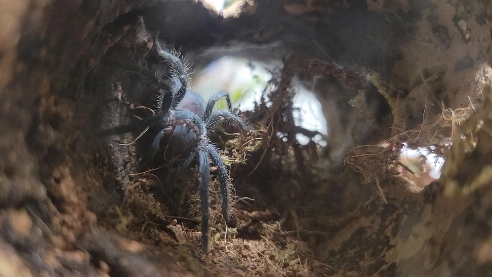 Red island bird eaters are native to the island of Hispaniola, otherwise known as Haiti and the Dominican Republic. Throughout their life they go through a dramatic color change: as spiderlings, they start with shades of pink or blue on their legs with a dark carapace or what might look like their head as well as red and black stripes on their undersides, but as adults they are typically bronze or brown and can appear to have a pink shine to them after they molt. Like all tarantulas, they have four pairs of legs, making eight legs total, and they have four other appendages near the mouth called the chelicerae, which contain the fangs and venom, and pedipalps, which are used as feelers and claws. Due to their bodies being made up this way spiders are technically not insects, but arachnids, because insects have three body parts and six legs total, whereas tarantulas and spiders have two body parts and eight legs total. These tarantulas have earned their name for the venom they contain and the strength it must take down birds, however, it is not strong enough to affect humans more than anaphylactic shock or an allergic reaction.