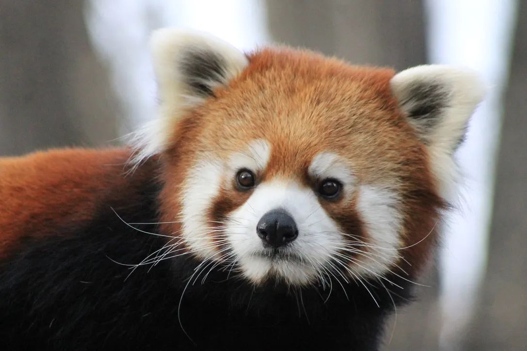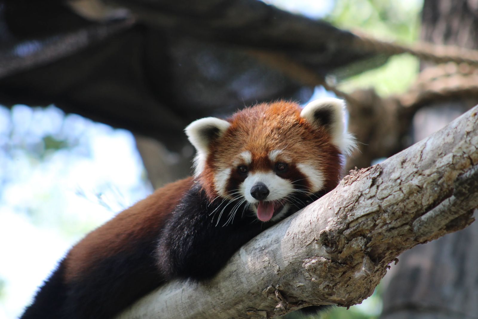 Red pandas earned the name “panda” first before the giant panda was discovered. The giant panda was named after them because of all the similarities they have in common. Today scientists have learned that red pandas belong to their own unique family and, contrary to their common name, they are not pandas but belong to a unique group called Ailuridae. In this family, there are only two subspecies of red pandas (we have both at the Zoo) and they are very similar. Both subspecies can be found in bamboo forests in Asia, however, one subspecies is primarily found in China while the other is mainly found in India. Red pandas, like the name, are primarily red across their back with a darker underside and legs. Certain patterns like their ringed tail and their mask-like face pattern are some of the easier ways to recognize them. This coloration and pattern help the red pandas camouflage their environment which consists of reddish-brown moss and white lichen often found on the trees.