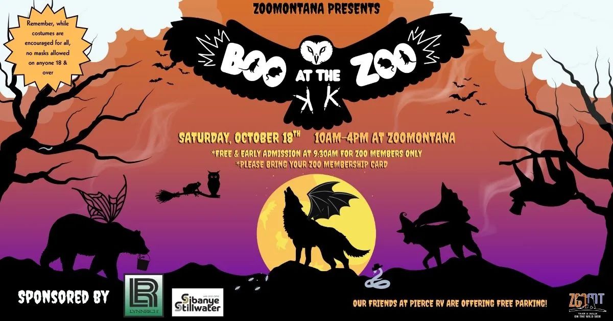 Billings' favorite family Halloween event is back to provide the safest trick-or-treating in town! Fun activities, animal enrichments and candy galore! Come on out and enjoy this event sponsored by Lynnrich and Sibanye Stillwater. Included with regular admission price and FREE for Members. Our friends at Pierce RV generously offer free parking for Boo at the Zoo guests.